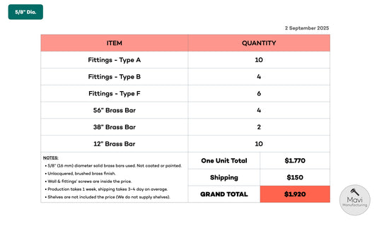 2x Custom brass shelving units - 5/8"Dia. - Unlacquered Brushed Brass Finish (Dan Morehouse)