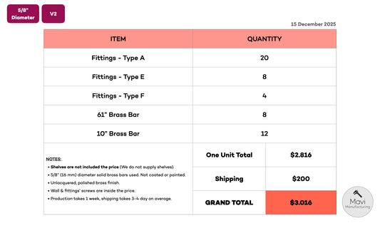 Custom brass shelving unit - 5/8"Dia. - Unlacquered Brushed Brass Finish (Many Hing)