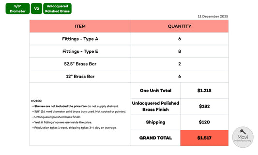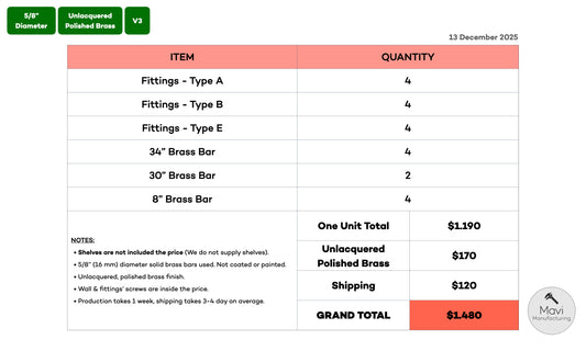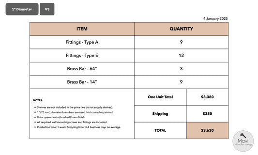 4x Custom brass shelving units - 5/8"Dia. - Unlacquered Brushed Brass Finish (Jackie Lewis)