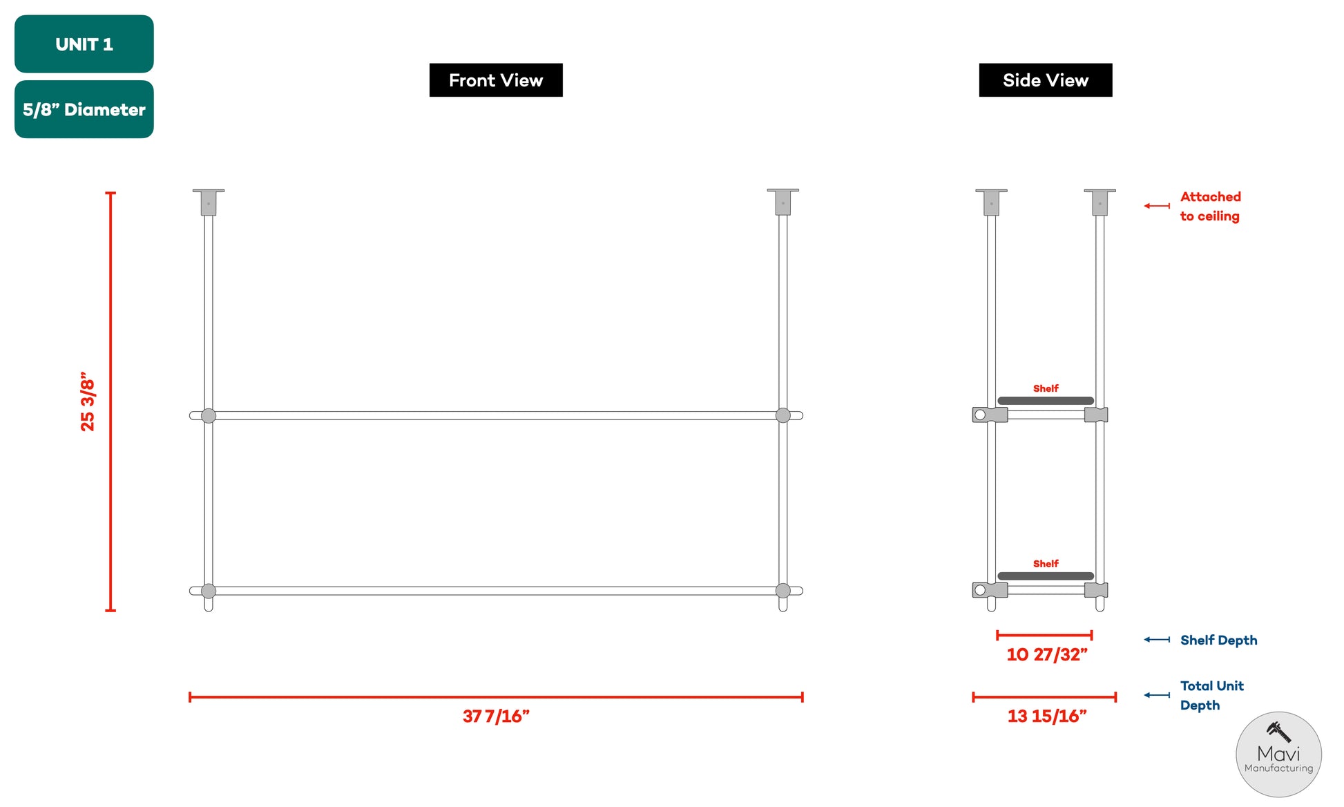 2 x Custom brass shelving units - 5/8"Dia. - Unlacquered Brushed Brass Finish (Mike Leary)