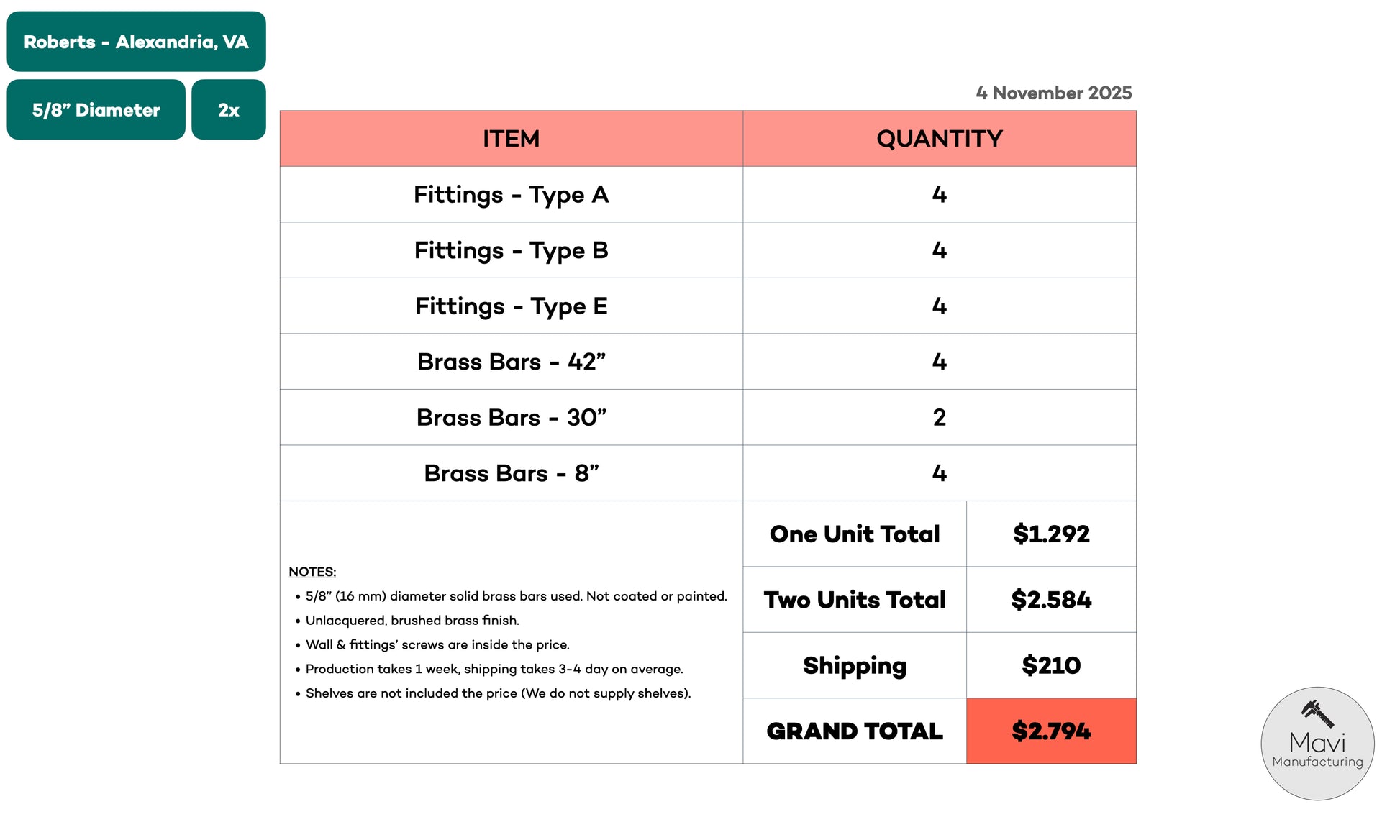• Production takes 1 week, shipping takes 3-4 day on average..