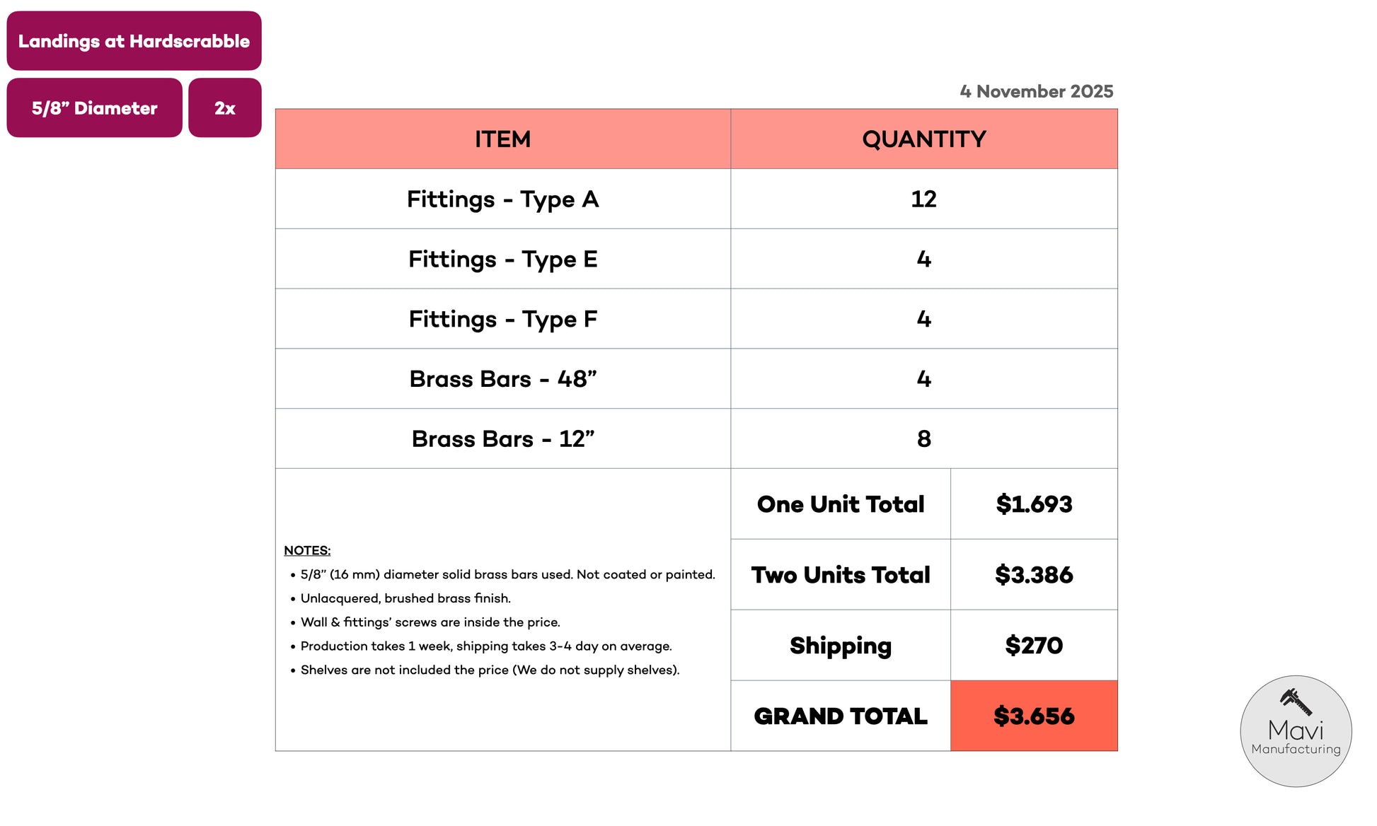 4 x Custom brass shelving units - 5/8"Dia. - Unlacquered Brushed Brass Finish (Carlee Cardwell)