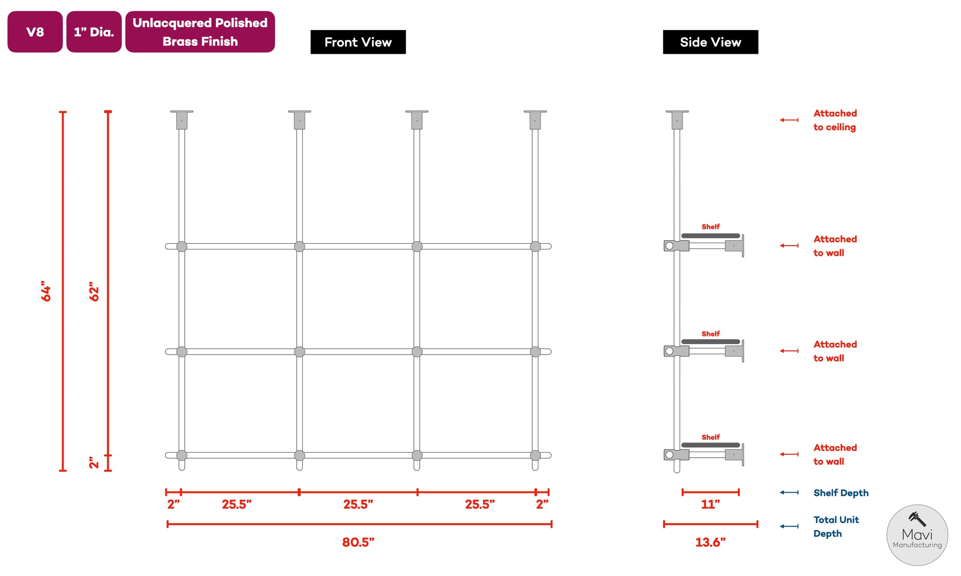 Custom brass shelving unit - 1"Dia. - Unlacquered Polished Brass Finish (Robert Van Dyke) (2x4y)