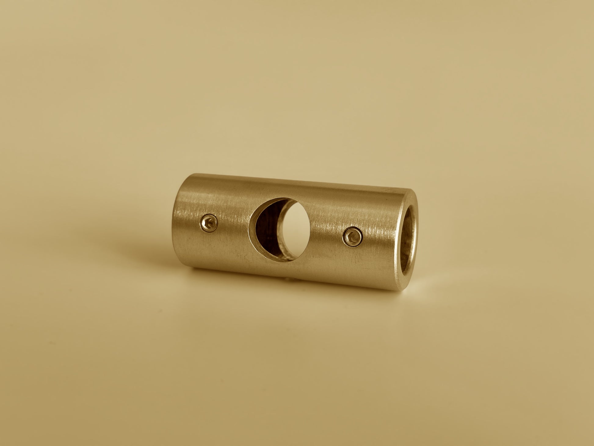 Our Type C solid brass fitting connects three pipes in a cross formation, allowing one pipe to pass straight through while two others join at 90-degree angles. This pass-through design is ideal for creating modular shelving units, multi-level furniture, and complex architectural frameworks. Precision-machined from 100% solid, unlacquered brass, it offers exceptional strength, durability, and timeless elegance.